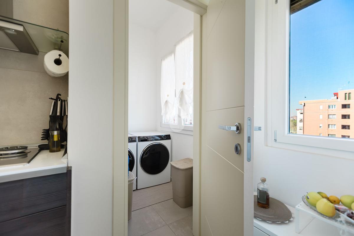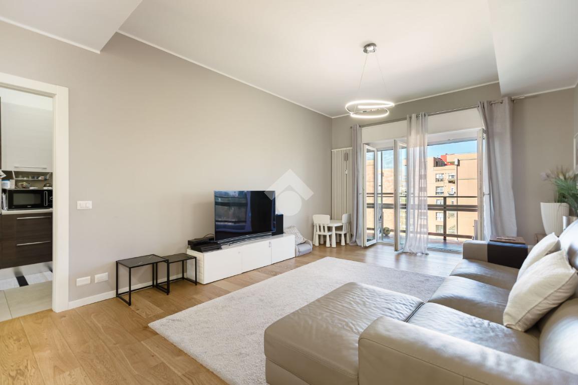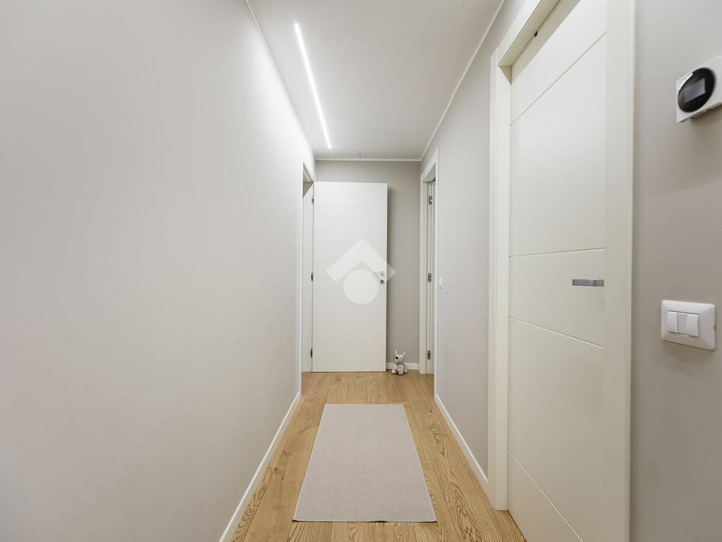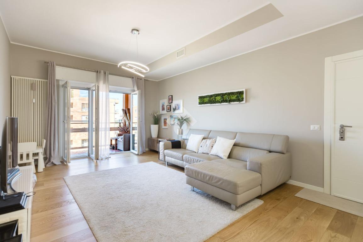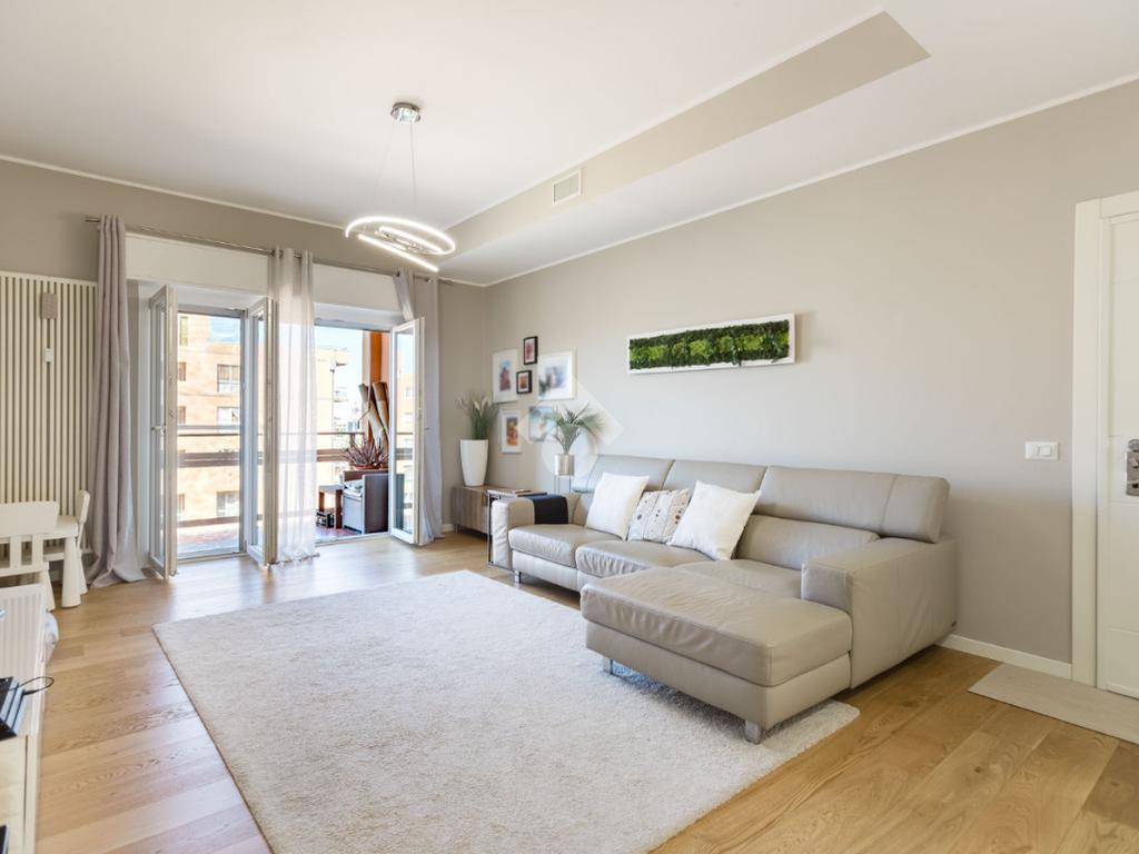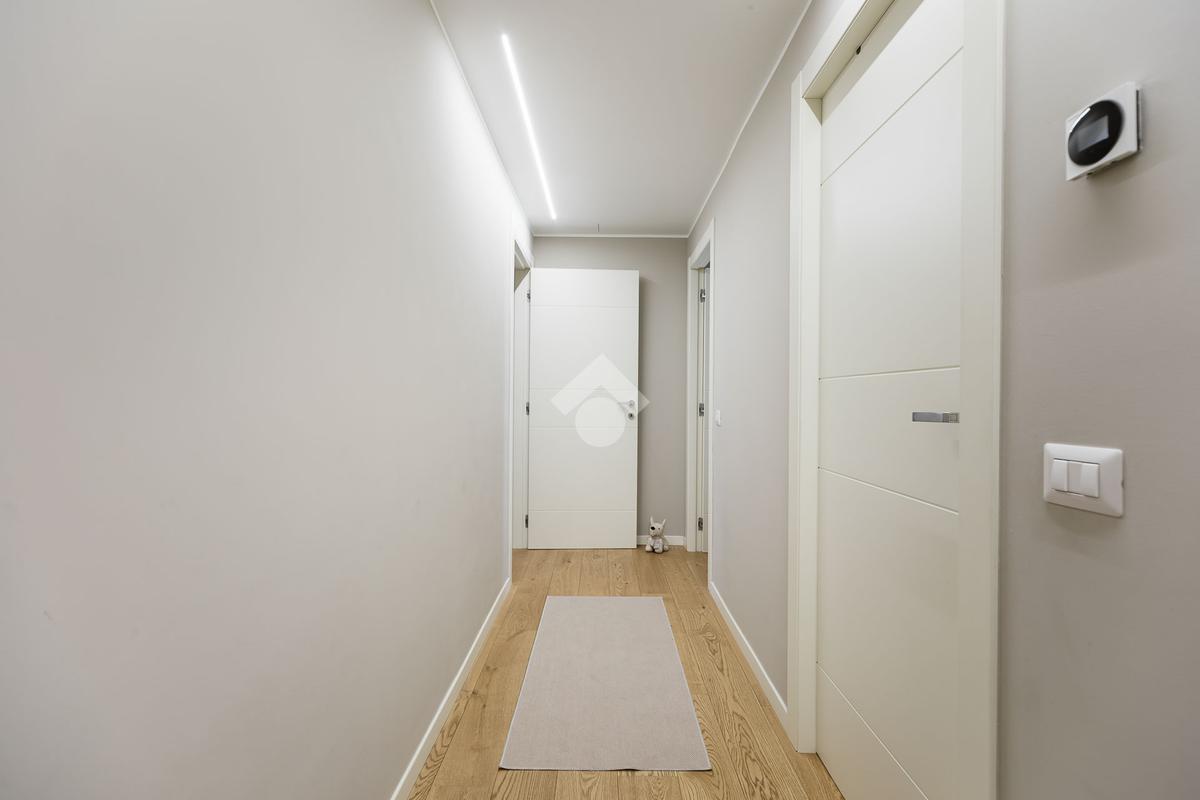 L’appartamento, impeccabile e pronto da abitare, si sviluppa attraverso ambienti eleganti e perfettamente bilanciati: un ampio living di rappresentanza, cucina separata, due camere da letto, doppi servizi e una funzionale lavanderia. Il parquet di pregio, presente in tutta la casa ad eccezione della cucina e dei bagni, dona calore e continuità, esaltando il carattere contemporaneo degli interni.